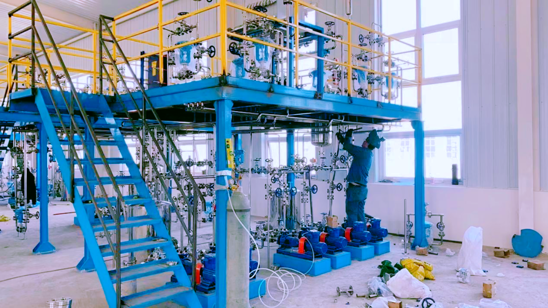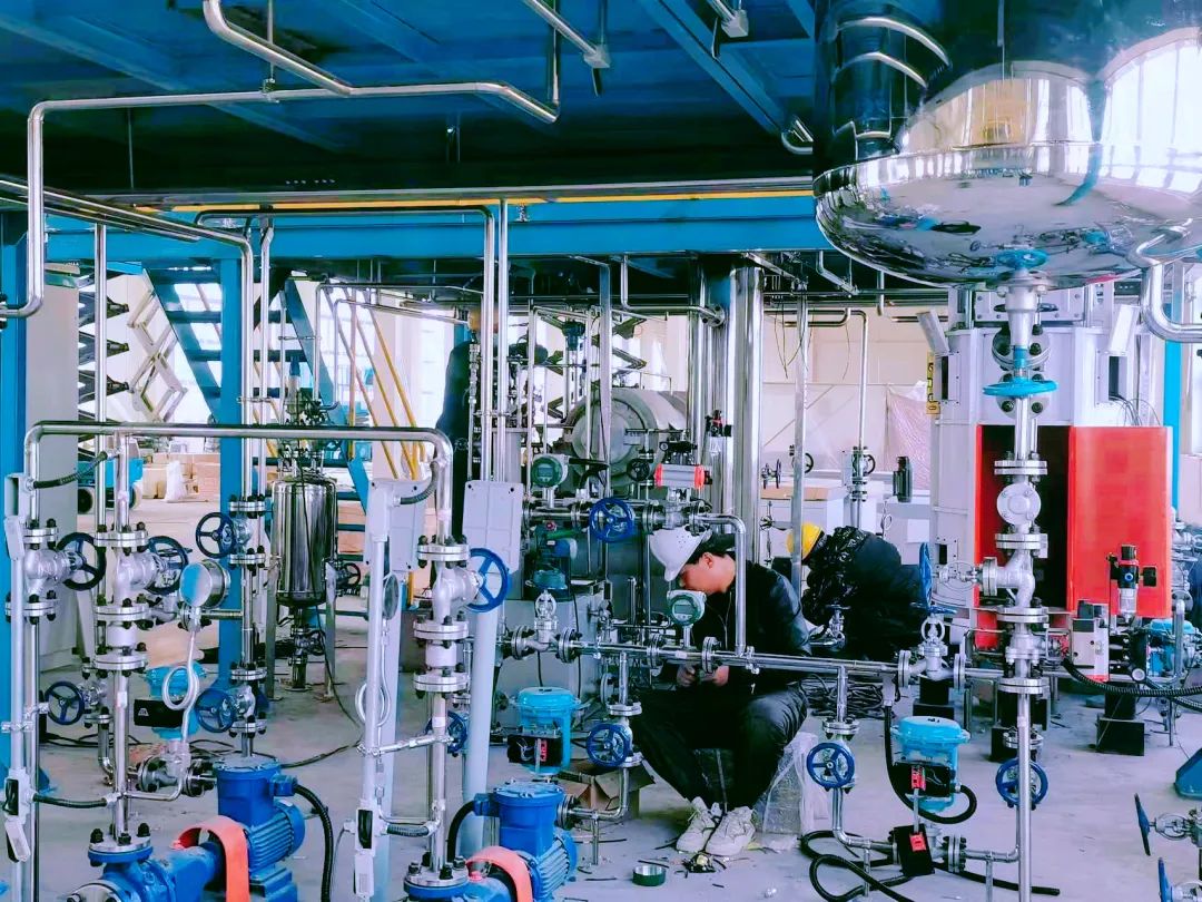 目前,實(shí)訓(xùn)基地裝修工作已完成,16套危化特種作業(yè)實(shí)操考核裝置框架搭建、設(shè)備布置、管線連接、儀表點(diǎn)及主線槽安裝、分線槽鍍鋅管施工、線槽布線等均已完成,3套化工單元操作裝置框架搭建、設(shè)備布置、管線連接、管道滿焊已完成,已完成安裝總施工進(jìn)度的80%。
