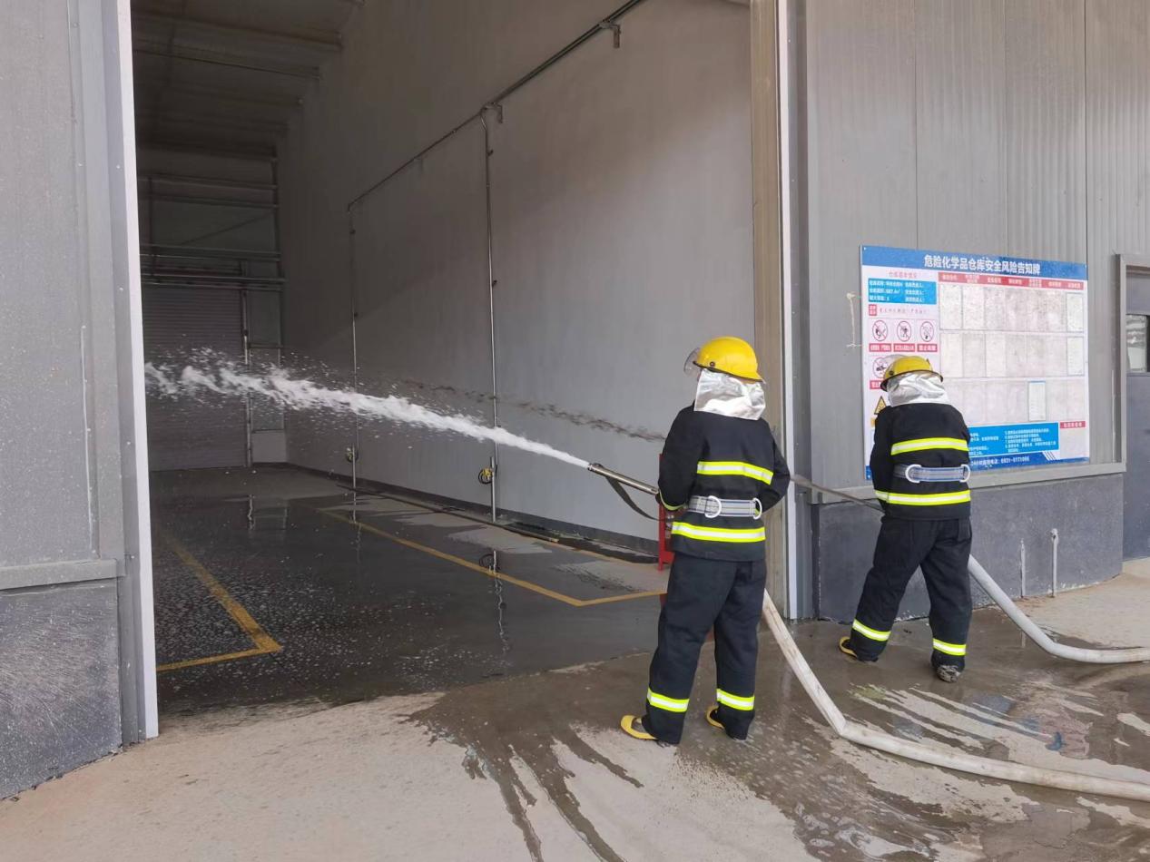 演練開始前,由應(yīng)急救援總指揮為參加演練的員工們就如何正確使用消防器材、火災(zāi)基本常識、?;穫}庫甲類庫物料特性、滅火基本常識等知識進行了詳細講解,并對此次演練活動提出了相關(guān)要求。演練中,參演人員全程按相關(guān)應(yīng)急預(yù)案進行,大家認真對待,服從指揮,演練活動有序進行。經(jīng)過緊張有序高效的應(yīng)急處置工作,有效控制和處置,“火災(zāi)”被完全撲滅,演練圓滿結(jié)束。