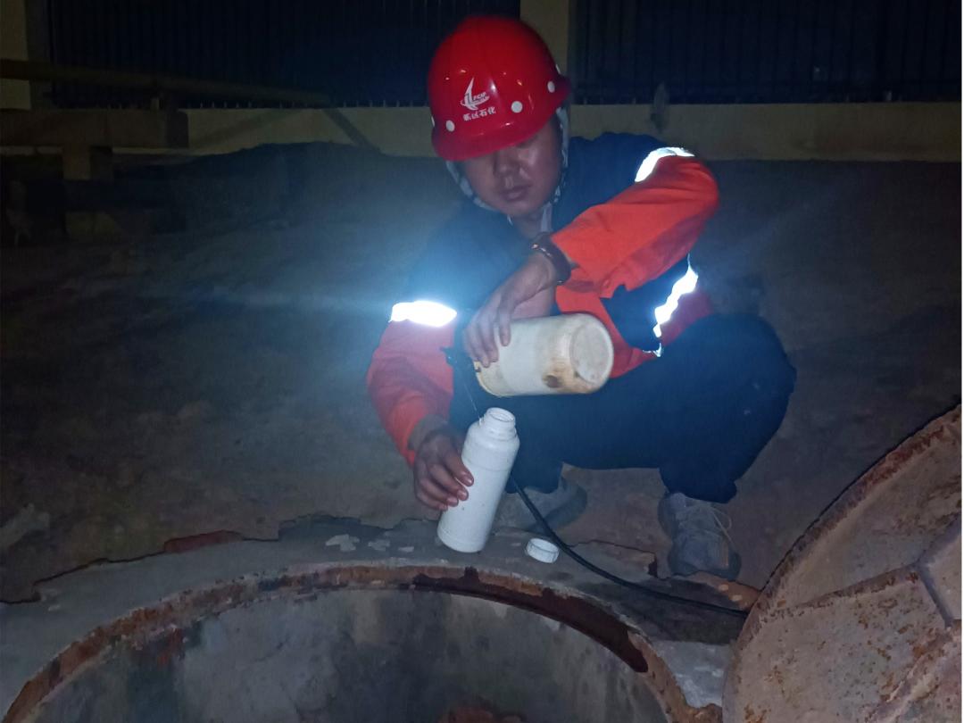 “緯五十三路正常,我們?nèi)ソ?jīng)三十五路看看……”。為保障化工園區(qū)雨污水管網(wǎng)的正常運(yùn)行以及園區(qū)入駐企業(yè)的正常排污,拉井蓋、取樣、檢查是石化集團(tuán)博石環(huán)保公司管網(wǎng)巡檢人員日常工作的縮影,他們更是園區(qū)綠色發(fā)展的衛(wèi)士。