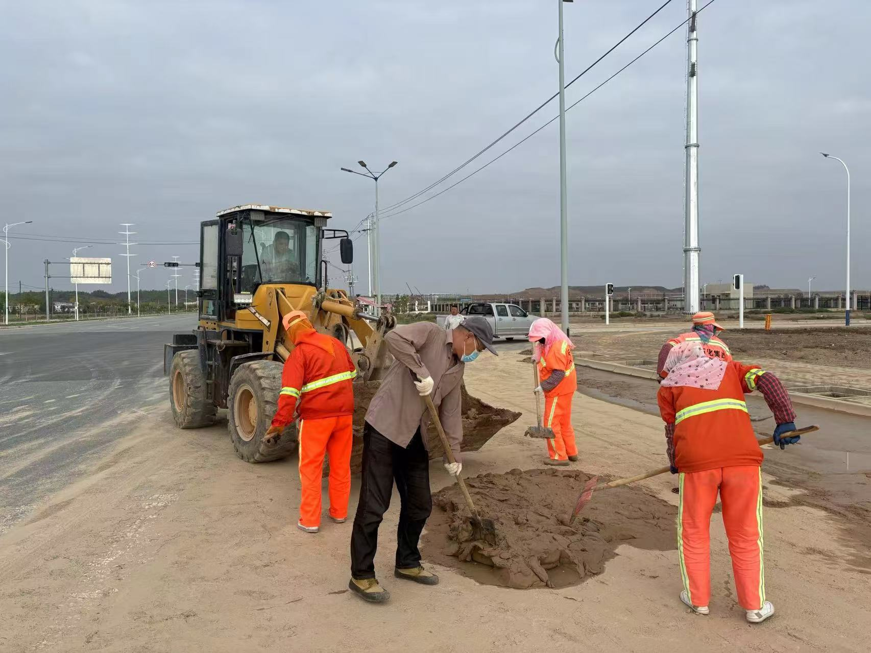 在搶險(xiǎn)過(guò)程中,消防隊(duì)員們充分發(fā)揮專業(yè)優(yōu)勢(shì),利用排水設(shè)備爭(zhēng)分奪秒排除路面積水,久泰服務(wù)公司工作人員則齊心協(xié)力,奮力清理路面淤泥,有條不紊地為恢復(fù)交通秩序貢獻(xiàn)著自己的力量。經(jīng)過(guò)數(shù)小時(shí)的緊張奮戰(zhàn),化工園區(qū)的交通狀況得到保障,車輛恢復(fù)正常通行,園區(qū)企業(yè)的生產(chǎn)和居民生活秩序正在逐步恢復(fù)。