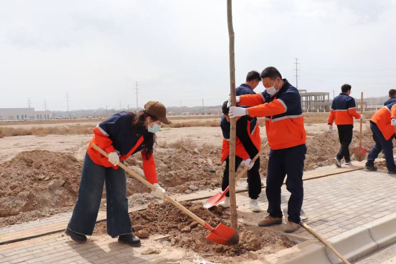 春回大地,草木萌發(fā)。為深入踐行習(xí)近平總書記提出的“綠水青山就是金山銀山”理念,厚植綠色發(fā)展底色,2026年4月8日下午,蘭州新區(qū)化學(xué)工程有限公司組織全體職工在蘭州新區(qū)化工園區(qū)緯五十一路開展春季義務(wù)植樹活動?;顒右浴爸簿G護(hù)綠人人參與,美麗園區(qū)人人共享”為主題,既是對石化集團(tuán)和蘭州新區(qū)“共建綠色化工園區(qū)、推動綠色發(fā)展”要求的積極踐行,也是公司厚植綠色發(fā)展底色、凝心聚力共建美好家園的生動實(shí)踐。